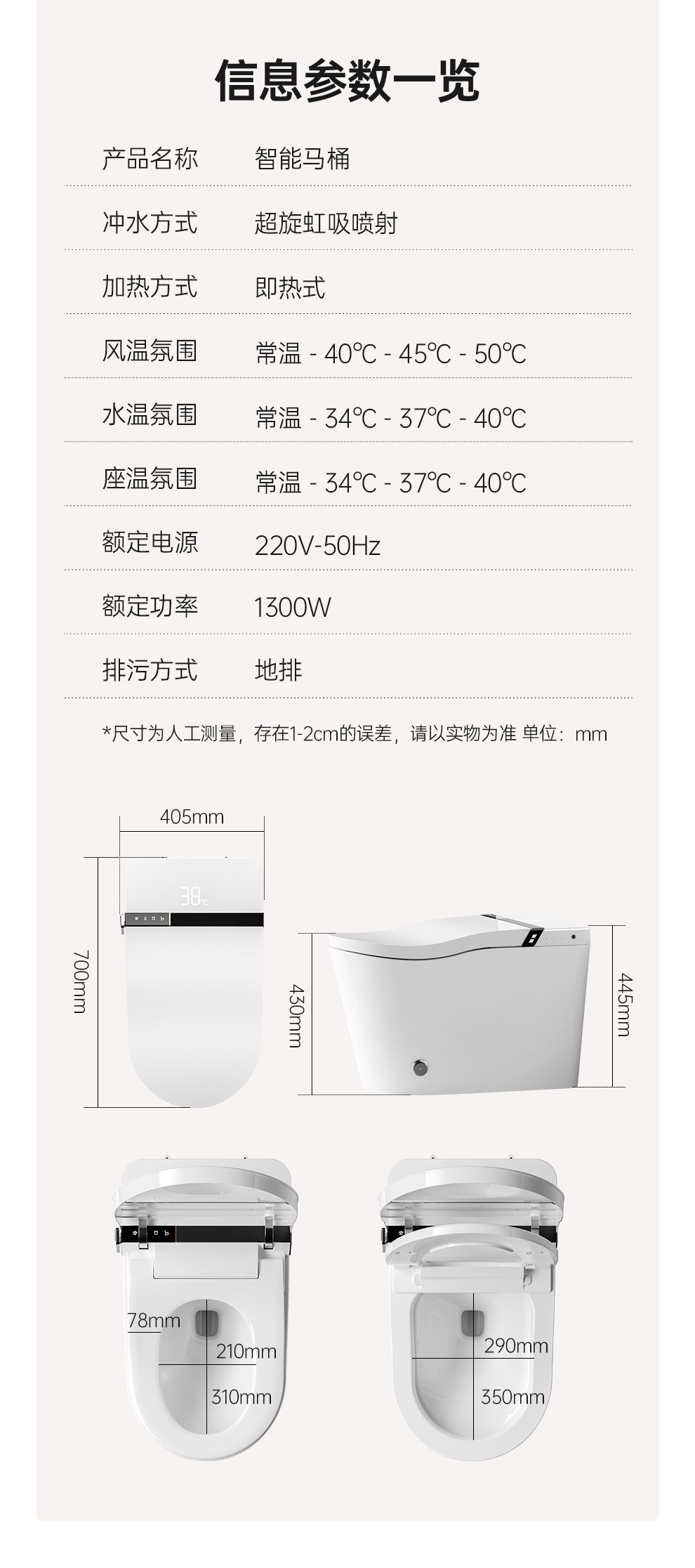 产品名称: 一体式智能座便器